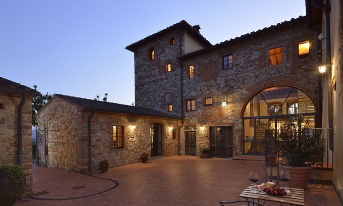 Hôtel de style toscan, avec exploitation viticole attenante et piscine extérieure (ouverte en saison)