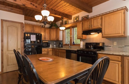 Un escalier intérieur s'ouvre sur une superbe grande pièce, comprenant un canapé sectionnel surdimensionné, une cuisine ouverte et une table à manger pouvant accueillir six personnes. Deux chambres, meublées de deux lits simples chacune, offrent un endroit idéal pour les enfants ou peuvent être réunies pour créer un lit king-size. La chambre principale située dans le loft est spacieuse et offre un lit queen dans la chambre elle-même et un lit simple juste dans le couloir. Lorsque le ruisseau est en marche, les clients peuvent même s'endormir au beau son du ruisseau babillant!