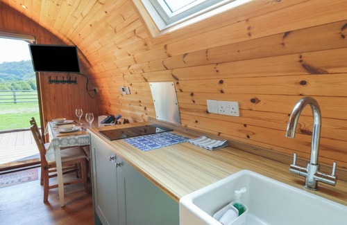 Bwthyn Bach Brefi, a single-storey glamping pod, consists of a kitchen with a two-ring induction hob, fridge with icebox, and microwave, and a living/dining room with a corner sofa and dining seating for 4. The bedroom is a double. There is a shower room with a walk-in shower, basin, and WC. WiFi, fuel, power, bed linen, and towels are included in the rent. Outside, there is a non-enclosed patio with a bench, table, and chairs, a hot tub, and designated parking place for one car. Sorry, no pets and no smoking. Enjoy a refreshing break with your loved ones at Bwthyn Bach Brefi.