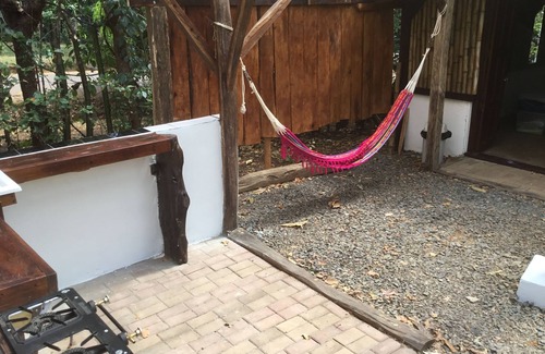 Cabaña est située en face d'un jardin tropical à environ 15 mètres de la maison principale. Propre toilettes et douche (froide).