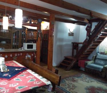 Situé à Rîu Bărbat, l’hébergement Cabana Ollie Retezat offre une vue sur le jardin. Il propose un service de prêt de vélos, un jardin, un salon commun et une connexion Wi-Fi gratuite. Cette maison de vacances comprend un parking privé gratuit et une cuisine commune. Disposant d’une terrasse et offrant une vue sur la montagne, cette maison de vacances comprend 5 chambres, un salon, une télévision à écran plat par satellite, une cuisine équipée, ainsi que 2 salles de bains avec un bidet et une douche. Des serviettes et du linge de lit sont mis à votre disposition. Parlant anglais et roumain, le personnel de la réception se fera un plaisir de vous fournir des conseils pratiques sur la région. L’établissement Cabana Ollie Retezat possède une aire de jeux pour enfants et un barbecue. Vous séjournerez à respectivement 45 km et 36 km de ces lieux d’intérêt : Château des Corvin et Monastère Prislop. L'aéroport le plus proche (Aéroport international de Sibiu) est à 154 km.
