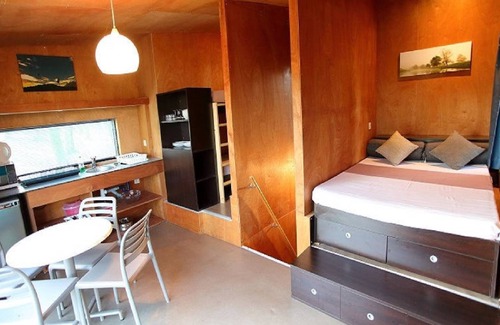 - une kitchenette avec plaques à induction et micro-ondes pour vous permettre de cuisiner en autonomie, une bouilloire, une cafetière, un mini réfrigérateur,