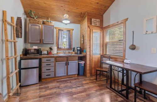 Perched above the White River and Inspiration Valley, this cozy 1BR cabin is made for romantic escapes. Soak in the large jacuzzi tub, relax by the wood-burning fireplace, and take in breathtaking views from your private back deck. Enjoy a king bed, walk-in shower, comfy seating, Dish TV, and WiFi. The kitchenette is stocked for quick meals and morning coffee. Just 10 min to Eureka Springs and Beaver Lake, it’s the ideal spot to relax, explore, and soak in the Ozarks’ natural beauty.