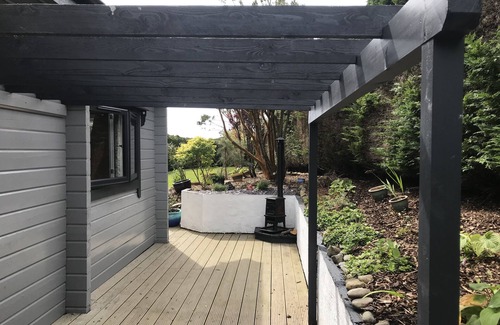 La cabane et les jardins environnants bénéficient d'une vue panoramique sur la baie de ballymorran et le lough.