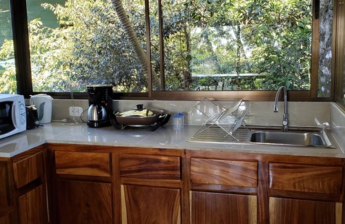 Cabines à l'intérieur de la montagne. Nous avons des sentiers privés et des services d'information générale de Monteverde. Près de la place est la station d'essence, un supermarché et des restaurants. La plupart des activités touristiques incluent le transport depuis notre hôtel. Notre petit déjeuner inclus est délicieux et notre personnel rendra votre visite très agréable. De là, vous pouvez réserver et recevoir des informations sur toutes les activités touristiques de la région.