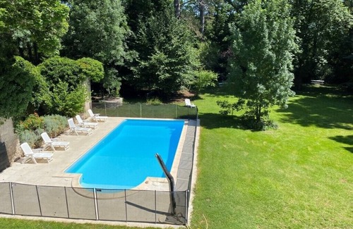 A 10 minutes de Cahors, « le Moulinat » gentilhommière familiale du XVII e siècle est située dans une boucle du lot, au lieu dit Cessac, sur la commune de Douelle. cette demeure nichée dans un parc boisé, entouré de vignes et de cultures maraîchères vous séduira pour son calme et son authenticité.Le village de Douelle accessible à pied en coupant sur 700 mètres à travers les vignes ou par la route en voiture dispose de nombreuses commodités (restaurants, alimentation-presse boulangerie, médecin, kiné, poste, école de parapente, tennis, base nautique etc.)Autour de la propriété routes de campagne peu fréquentées, chemins champêtres et voie verte permettent a pied ou à vélo de nombreuses balades. Les collines avoisinantes offrent également de nombreux parcours de randonnée et de splendides panoramas sur la vallée calme et verdoyante.En plus de la piscine, le lot tout proche permet également la baignade en pleine nature.