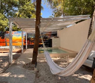 Situé à El Cuyo, l’hébergement Casa AMI offre une vue sur le jardin. Il propose une piscine extérieure, un jardin, une terrasse et une connexion Wi-Fi gratuite. Cette maison de vacances comprend un balcon. Cette maison de vacances avec climatisation comporte 2 chambres, une télévision à écran plat, un coin repas, un salon, ainsi qu’une cuisine avec un réfrigérateur. Vous séjournerez à respectivement 300 mètres et 1,2 km de ces lieux d’intérêt : Plage d’El Cuyo et Playa Cocal. L'aéroport le plus proche (Aéroport international de Cancún) est à 159 km.