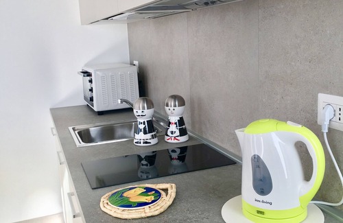 L'appartement dispose d'une cuisine équipée d'une plaque à induction, d'un four électrique, d'une bouilloire et de tout l'équipement nécessaire. Lit double et lit fauteuil déjà préparé avec des draps frais et repassés.