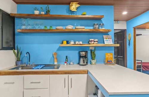 Just 300m from Playas Del Coco and near the town center, Casa Claudia is perfect for families, couples, and digital nomads. Enjoy a queen bed, twin beds, futon, and a fully equipped kitchen. You'll adore the brand new sectional sofa with comfy pillows in the screened area. Relax in hammocks or the yoga space, stay fit in the gym, and savor local cuisine nearby. Fast Wi-Fi and dedicated office space included. Book now for unforgettable memories!