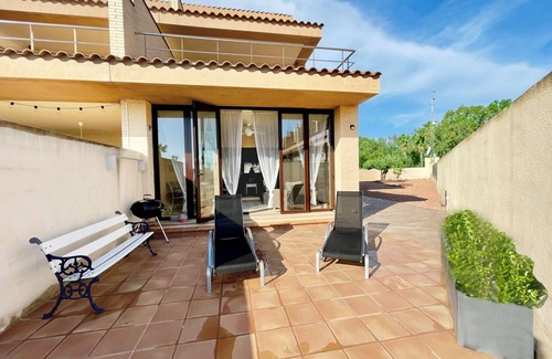 Avec la Casa Dani et ses magnifiques vues sur la mer, vous aurez accès à de vastes jardins et pelouses, à des courts de tennis et de paddle, à des terrains de football et de basket en toute saison, à une table de ping-pong, à une aire de jeux et à une immense piscine pour adultes et enfants. La Casa Dani, qui dispose également d'un immense jardin privé, est meublée avec beaucoup de bon goût, avec ses deux salons, une grande cuisine américaine et trois chambres spacieuses. La première, avec salle de bain attenante et un grand lit double. La deuxième chambre possède un lit double et la troisième a deux lits simples, toutes deux se partagent une grande salle de bain. Et comme cette maison a la chance de se trouver à l'extrémité de la terrasse, elle a des fenêtres supplémentaires orientées à l'est, qui permettent l’entrée de beaucoup de lumière dans les zones de vie. Il y a une terrasse ensoleillée avec barbecue et des chaises longues pour se prélasser au soleil. Et l’avantage de Casa Dani est qu'elle est située à Las Palmeras, la station balnéaire la plus familiale de l'univers! A proximité de la plage, avec des installations tout simplement géniales, vous passerez des vacances en famille parfaites et relaxantes, celles que nous méritons tous.