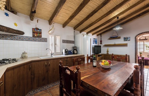 Située dans une zone tranquille sur la plage de Benajarafe, la maison de vacances Casa del Pipa ne manquera pas de vous impressionner par son emplacement idéal et la vue sur mer extraordinaire depuis sa grande terrasse. Pouvant accueillir 7 personnes, la maison de vacances dotée d'arcades rustiques en pierre et d'un joli décor traditionnel se compose d'un salon avec cheminée, une cuisine bien équipée, 3 chambres à coucher (dont une avec un lit double, une avec un lit simple et une avec un lit double et deux lits simples) ainsi qu'une salle de bain. La maison de vacances adaptée aux enfants est également équipée du Wi-Fi, de la climatisation, d'une machine à laver et de 3 téléviseurs (dans le salon, la cuisine et l'une des chambres). A l'exception de la marche à l'entrée de la propriété, un fauteuil roulant peut se déplacer facilement dans la maison ainsi que dans la douche qui est assez grande pour pouvoir l'y placer. Cependant, le point fort de la propriété est indéniablement son patio spacieux et couvert, donnant directement sur la plage au sable blanc et la mer scintillante. Ce dernier est l'endroit idéal pour passer des matinées détendues autour d'une tasse de café chaud ou encore savourer de délicieux repas, fraîchement préparés sur votre barbecue. Laissez la magie de la nature opérer sur vous - détendez-vous sous le soleil espagnol dans la partie non-couverte de la terrasse et dégustez un verre de vin sur votre balcon, tout en admirant les magnifiques montagnes de la région. Un supermarché et une sélection de restaurants locaux, de charmants magasins, cafés et bars se trouvent à environ 950 m, soit à 13 minutes de marche de la propriété. Playa de Benajarafe, la magnifique plage que vous apercevez depuis votre terrasse, n'est qu'à 230 m, soit à 4 minutes de marche au pied de la colline.