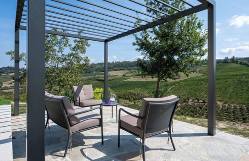 Very modern, comfortable country house "Casa Faretto", renovated in 2022, surrounded by fields and vineyards. 5 km from the centre of Costigliole d'Asti, in a secluded, sunny position on top of a hill. For shared use: property 7'500 m2, large garden 2'500 m2 (fenced), meadow, swimming pool (10 x 5 m, depth 150 cm, seasonal availability: 18.May. - 14.Sep.) with salt-electrolysis pool-cleaning system. In the house: washing machine (extra) (for shared use). Parking at the house on the premises. Shop 3 km, supermarket 5 km. Golf course (9 hole) 11 km. Nearby attractions: Asti 20 km, Alba 25 km, Turin 70 km, Savona-Rieviera Ligure 100 km. Please note: car recommended. The owner does not accept any groups. The owner does not accept any youth groups. Owner lives in separate semi-detached house.