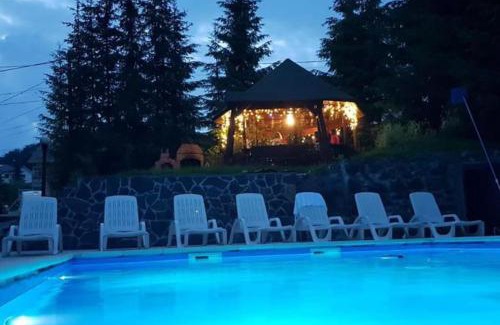 Situé à Cavnic, l’hébergement Casa Maximia propose une piscine extérieure ouverte en saison, un sauna et un bain à remous. Il dispose également d’un balcon offrant une vue sur la piscine et le jardin. Cette villa comprend une piscine privée, un jardin, un barbecue, un parking privé gratuit et une connexion Wi-Fi gratuite. Disposant d’une terrasse et offrant une vue sur la montagne, cette villa comprend 12 chambres, un salon, une télévision à écran plat par câble, une cuisine équipée, ainsi que 13 salles de bains avec un bidet et une douche. Des serviettes et du linge de lit sont disponibles. Vous pourrez jouer au ping-pong sur place, et pratiquer le ski dans les environs. Vous séjournerez à respectivement 13 km et 15 km de ces lieux d’intérêt : The Wooden Church of Budeşti et The Wooden Church of Şurdeşti. L'aéroport le plus proche (Aéroport international de Maramureș) est à 40 km.