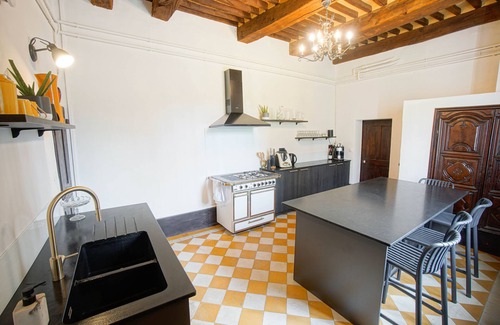 Rénové en 2022, le château est à la location depuis juste une année, nous le louons entier pour 15 personnes. Vous pourrez donc profiter de 800 m2 intérieurs et 1000 m2 de jardin pour des vacances dans un cadre d'exception tant par l'aspect historique du lieu que par son emplacement au cœur de village. Tout a été pensé pour que vous vous sentiez chez vous et que vous puissiez vivre des vacances mémorables. L'emplacement du château au cœur du village est totalement privilégié, si vous le souhaitez vous pourrez tout faire à pied dans le village : nombreux commerces, promenades, visites...