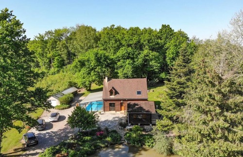 Relax by the private pool or sip a drink by the firepit of this vacation home. For a change of scenery, come inside and enjoy the free WiFi and TV.