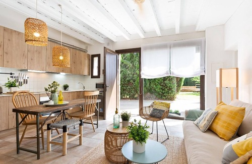 Bienvenido a esta exquisita villa en Sant Mori, donde la elegancia se une a la comodidad en un entorno amplio y acogedor. El corazón de la casa es el amplio salón, perfectamente abierto a una cocina totalmente equipada. Aquí, encontrará todas las comodidades necesarias para que su estancia sea agradable y sin complicaciones, incluyendo una amplia gama de utensilios de cocina, platos, vasos, cubiertos, toallas, así como una lavadora, secadora y plancha. A poca distancia de Sant Mori, Figueres es conocida por ser la ciudad natal de Salvador Dalí y por albergar el Teatro-Museo Dalí. Este museo surrealista alberga una amplia colección de obras del artista y es una visita obligada para los amantes del arte. La villa cuenta con tres dormitorios amplios y luminosos, diseñados pensando en su comodidad. El dormitorio principal cuenta con una lujosa cama de matrimonio, mientras que el segundo dispone de versátiles camas individuales que pueden combinarse según las necesidades. El tercer dormitorio destaca por su llamativa pared de cristal, que añade un toque de sofisticación y luminosidad, con la opción de privacidad mediante cortinas «foscurit». El aire acondicionado garantiza un ambiente fresco y confortable en toda la villa, complementado por silenciosos ventiladores de techo en todas las habitaciones. Salga al exterior y descubra un hermoso jardín y una piscina de agua cristalina, un refugio perfecto para la relajación y el ocio. Esta villa combina comodidades modernas con toques de lujo, por lo que es una opción excepcional para una estancia memorable en Sant Mori.