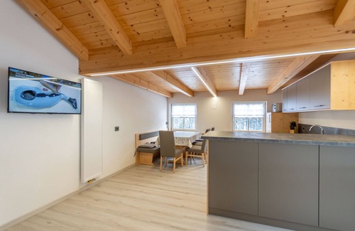 Cet appartement au charme incontestable dans les montagnes de Mazzin a décidément tout pour vous plaire. Dolomites n'est qu'à quelques minutes à pied, vous pourrez donc laisser votre voiture au parking dont dispose l'hébergement ou sauter dans votre véhicule pour le trajet de 5 minutes jusqu'à Centre de bien-être QC Terme Dolomiti.