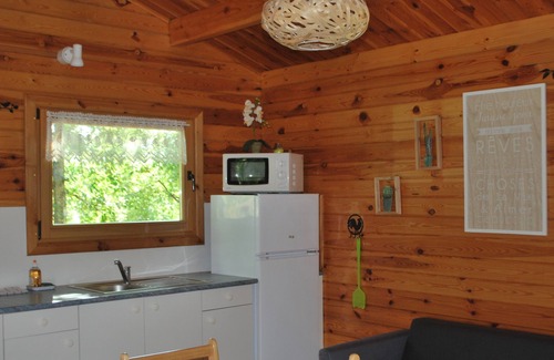 Chaque chalet est décoré et personnalisé. Il dispose d'une pièce principale avec partie cuisine, d'une chambre avec lit double, d'une chambre avec lits superposés, d'un espace rangement, d'une salle d'eau et d'un toilette séparé, d'une terrasse avec barbecue en pierre et salon de jardin. Tout est conçu pour s'y sentir bien.