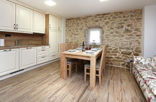A beautiful Villa Petra is a dalmatian stone house with a large terrace, a pool and a spacious garden. It can accommodate up to ten persons. It consists of 2 stone houses connected by a large terrace. On the terrace there is a big pool, a fully equipped open summer kitchen with modern appliances and a fireplace that can be used as BBQ grill, a seating and dining area, and additional bathroom with a shower.