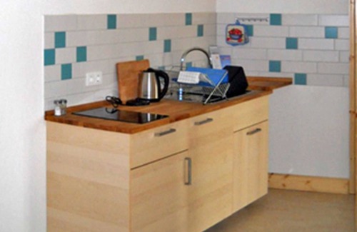 The three rooms in turquoise share a bathroom and a pantry in the hall, so self-catering is possible. The pantry is equipped with all the necessary equipment of best energy efficiency. This 12m ² room is located upstairs and looks to the cowshed, the calf meadow right with the children's farm, behind it in the round trees border the lake from the view. The decor comes from friendly designers and carpenters. Artists from the farm and its surroundings exhibit their paintings and works in it. A double room with double bed (180x200, separate mattresses) and access to the balcony. The guest room can be reached via the external staircase and gallery, also directly over the private balcony. A television connection is not available but Internet Wi-Fi is available free of charge.