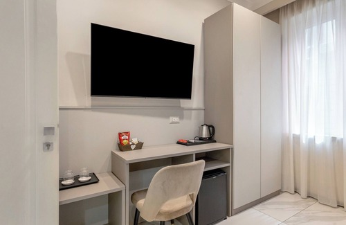 La Room Suite con piscina privata est située à Napoli et constitue l'hébergement idéal pour une escapade relaxante. La propriété de 25 m² comprend 1 chambre et 2 salles de bains et peut donc accueillir 2 personnes. Les équipements supplémentaires comprennent un Wi-Fi haut débit (adapté aux appels vidéo), une smart TV avec des services de streaming ainsi que la climatisation.