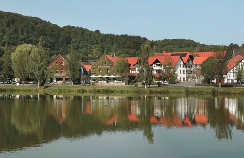Chambre type A - chambre double: Les chambres de cette catégorie disposent de: douche / WC, téléphone RNIS, mini-bar, télévision satellite u. Radio. 54 lits au total (4 chambres simples, 24 chambres doubles et 1 chambre partagée) "Quand je vois ce lac, je n'ai plus besoin de mer!" Avec ces mots, de nombreux invités envahissent le magnifique emplacement de notre maison, juste au bord du Edersee. La terrasse, le restaurant et la plupart des chambres offrent une vue magnifique sur le lac. Depuis 1866 déjà, nous maintenons la tradition gastronomique et vous offrons l'hospitalité aimable d'une maison familiale. Nos spécialités maison, nos produits régionaux et nos délices culinaires vous attendent dans notre restaurant: Notre cuisine propose des spécialités régionales: plats de poisson du Edersee, bœuf de notre propre élevage naturel et venaison de forêts locales. Nous serons heureux de vous aider à préparer vos randonnées, Organisez des visites guidées par des gardes forestiers ou des guides locaux, organisez des pique-niques ou apportez des paniers-repas au cours de votre randonnée. Lors des soirées d’information, nous aimons vous montrer des films du Kellerwald et du Edersee. Nous aimerions vous souhaiter la bienvenue ici aussi! Chambre type A - chambre double: Les chambres de cette catégorie disposent de: douche / WC, téléphone RNIS, mini-bar, télévision satellite u. Radio. 54 lits au total (4 chambres simples, 24 chambres doubles et 1 chambre partagée) "Quand je vois ce lac, je n'ai plus besoin de mer!" Avec ces mots, de nombreux invités envahissent le magnifique emplacement de notre maison, juste au bord du Edersee. La terrasse, le restaurant et la plupart des chambres offrent une vue magnifique sur le lac. Depuis 1866 déjà, nous maintenons la tradition gastronomique et vous offrons l'hospitalité aimable d'une maison familiale. Nos spécialités maison, nos produits régionaux et nos délices culinaires vous attendent dans notre restaurant: Notre cuisine propose des spécialités régionales: plats de poisson du Edersee, bœuf de notre propre élevage naturel et venaison de forêts locales. Nous serons heureux de vous aider à pr��parer vos randonnées, Organisez des visites guidées par des gardes forestiers ou des guides locaux, organisez des pique-niques ou apportez des paniers-repas au cours de votre randonnée. Lors des soirées d’information, nous aimons vous montrer des films du Kellerwald et du Edersee. Nous aimerions vous souhaiter la bienvenue ici aussi!