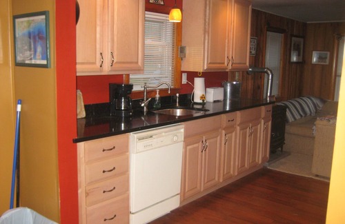 Chalet de 3 chambres, 6 chambres sur la plage situé à un mile de Charlestown Beach ou à quelques pas de Green Hill Pond Beach et Pavilion. Cottage peut accueillir jusqu'à 6 personnes confortablement. Cuisine moderne entièrement équipée avec comptoirs en quartz et armoires en érable. Cuisine comprend cuisinière à gaz, lave-vaisselle, micro-ondes et machine à glaçons. Nouvelle salle de bain rénovation en 2015. Chambre rénovée en 2016 et 2017. Maison bute bois et est sur la rue calme et familial. Grande nouvelle 28 x 12 terrasse avec table de pique-nique et barbecue au gaz. Extra cabine de douche à l'extérieur.