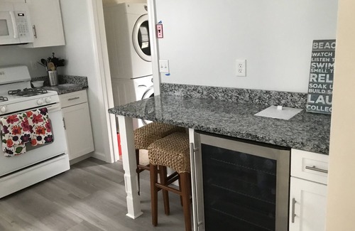 This cottage has everything new: including an outdoor shower and deck for outdoor dining. Newly renovated kitchen, bathrooms, & washer/dryer. It's a casual, comfy beach cottage with simple but very nice amenities. There is a deli across the street and we are around the corner from the Barnegat Bay and canal. Kids love to fish and go crabbing in this area.