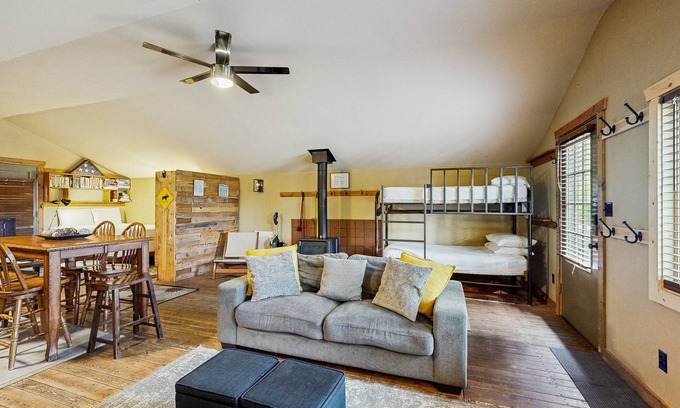 Quelle que soit la façon dont vous prévoyez de passer vos jours de vacances, cette charmante cabane constitue un excellent point de départ pour toutes sortes d'activités. Allongez-vous et détendez-vous sur le canapé pendant que vous rattrapez votre lecture, ou utilisez la cuisine compacte mais bien équipée pour préparer une collation après-ski. La cheminée facilite le réchauffement, tandis que le Wi-Fi gratuit vous permet de rester à jour et de vous divertir. Cette cabine de style studio est idéale pour les petits groupes qui ne craignent pas de passer du temps dans des quartiers étroits.