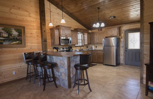 Sunset Ridge peut accueillir confortablement jusqu'à six personnes (les enfants sont les bienvenus!). Les deux chambres contiennent des lits queen-size, des œuvres d'art rustiques et un grand espace de rangement. Après une journée rafraîchissante sur l'eau ou dans les bois, détendez-vous en parcourant les 150+ chaînes DirecTV ou en vous pelotonnant près de la cheminée avec un bon livre.
