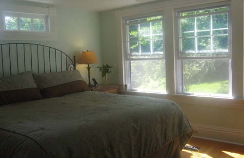 Logements: 1910 restauré et mis à jour Ferme victorienne et chalet sont situés sur une péninsule de 7 acres. Il dispose d'un grand porche sur deux côtés avec des rockers donnant sur les jardins et la pelouse bien entretenue 4 acres sur la terre en bas où se trouvent le légume, jardin d'herbes aromatiques et de baies sauvages. La pelouse est approprié pour une variété d'activités sportives du golf de frisbee, et le croquet, au touch-football. Sur le côté du ruisseau de la Ferme est une plate-forme multi-niveaux avec construit dans des bancs, un barbecue au gaz, avec une belle vue de longue de Reed Creek tous idéalement situé au large de la cuisine un arrangement idéal pour les repas en plein air agréables. Le chalet que nous appelons la «Cabane à sucre» est situé à côté de la ferme, avec un lit queen, salle de bain complète, il est propre terrasse privée, barbecue au propane, un mini-réfrigérateur, et est idéal pour un couple. Avec 4 chambres et 2 1/2 chambres dans la ferme, et une chambre et salle de bain complète dans le chalet. Il ya 4 reines et 1 lits king size offrant un hébergement confortable pour 10.