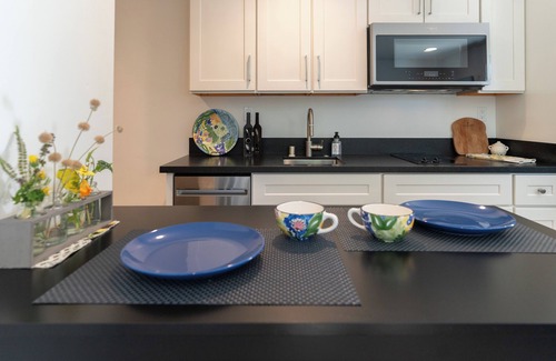 Aprovecha para preparar una comida casera: dispones de placa de cocina, lavavajillas y microondas. El cuarto de baño incluye un secador de pelo, toallas y papel higiénico. Y gracias a la lavadora y la secadora, podrás viajar con poco equipaje. Otras comodidades de este alojamiento de 1 dormitorio y 1 baño incluyen ropa de cama, una tabla de planchar, aire acondicionado y calefacción.