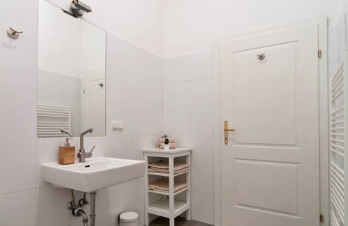 The apartment is located in a beautiful building which dates back to the 19th century, built with high ceilings in a typical Viennese style. It has immense windows from which you can nicely observe the daily life of the Viennese people.
