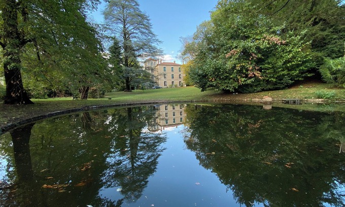 La Villa Firmin Galimard propose un Gite de charme pour 6 personnes, superbement rénové dans un Parc paysager centenaire de 8.600 m² en plein centre-ville et en bordure de la rivière la Volane.