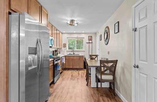 Unwind in the peaceful 2-bedroom, 1-bathroom duplex, beautifully furnished for a comfortable stay. This charming home offers a warm and inviting living spaces ideal for families, friends, or business travelers seeking a relaxing getaway. Enjoy a thoughtful welcome package featuring complimentary coffee, toiletries, and snacks upon arrival. Just a short 5-minute drive from the highway, this neighborhood offers easy access to local dining and entertainment options, perfect for exploring.