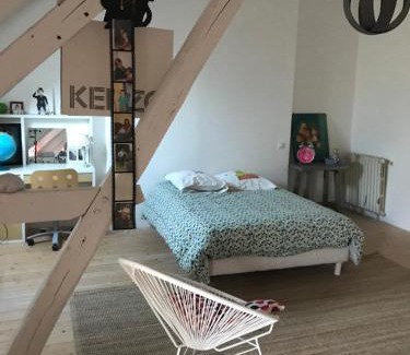 Situé à Marboué, à seulement 40 km de la gare de Chartres, l'établissement Chez leo propose un jardin, un salon commun et une cuisine commune. Offrant une vue paisible sur la rue, il dispose d'une cour intérieure et se trouve à 40 km du théâtre municipal de Chartres. Vous pourrez profiter d'un barbecue, d'une connexion Wi-Fi gratuite, d'un parking privé gratuit et d'une borne de recharge pour véhicules électriques. Offrant une vue sur le jardin, cet appartement spacieux dispose d'une terrasse, de 3 chambres, d'un salon, d'une télévision à écran plat, d'une cuisine équipée avec un lave-vaisselle et un four, ainsi que d'une salle de bains pourvue d'une douche à l'italienne. Cet appartement dispose également d'une terrasse qui fait office de coin repas extérieur. Cet appartement est non-fumeurs et insonorisé. Vous pourrez pratiquer diverses activités à Marboué et dans les environs, telles que la randonnée. Vous séjournerez à 40 km de la cathédrale de Chartres et à 46 km du château de Talcy. L'aéroport de Tours Val de Loire est à 93 km.