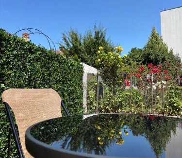 RestaurationPlateau / bouilloireInternetConnexion InternetSalle de bainsDouche à l'italienne, Douche, Sèche-cheveux, Salle de bains privative, Après-shampoing, Toilettes, Papier toilette, Baignoire ou douche, Serviettes, ShampoingHigh-techService de streaming (ex. Netflix), Chaînes du câble, Télévision à écran plat, TélévisionGénéralDétecteur de fumée, Entrée privée, Matériel de repassage, Chauffage, Fer à repasser, Parquet, Poubelles, Extincteur, ClimatisationCuisineLave-linge, Cuisine, Plaque de cuisson, Micro-ondes, Four, Table à manger, Bouilloire électrique, Machine à café, Verres à vin, Produits ménagers, Ustensiles de cuisine, Réfrigérateur, KitchenetteCoin salonCanapé, Bureau, Coin repas, Coin salonChambreTrès grands lits (> 2 mètres de long), Linge de maison, Armoire ou penderieVueVue sur une cour intérieure, Vue sur le jardinEn extérieurTerrasse, Espace repas extérieur, Mobilier d’extérieurAccessibilitéLogement entièrement situé au rez-de-chaussée, Logement entièrement accessible en fauteuil roulantCaractéristiques du bâtimentMitoyenÉquipements en chambreCanapé-lit, Oreiller sans plumes, Étendoir, Portant, Prise près du litDistanciation physiqueClimatiseur indépendant dans les hébergements |