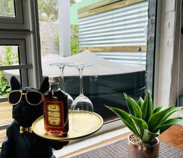 Salle de bainsSèche-cheveux, Salle de bains privative, Baignoire ou douche, Serviettes / linge de lit (frais supplémentaires), Baignoire, Papier toilette, Après-shampoing, Articles de toilette gratuits, Shampoing, Savon, Serviettes, Douche, ToilettesHigh-techTélévision à écran plat, Service de streaming (ex. Netflix), TélévisionGénéralClimatisation, Entrée privée, Sol carrelé / en marbre, Chauffage, Poubelles, Couvertures chauffantesActivitésBain à remousCuisineUstensiles de cuisine, Réfrigérateur, Produits ménagers, Grille-pain, Machine à café, Kitchenette, Bouilloire électrique, Verres à vinCoin salonCanapé, Coin salonChambreArmoire ou penderie, Linge de maisonEn extérieurMobilier d’extérieur, BarbecueVueVue sur le jardinAccessibilitéLogement entièrement accessible en fauteuil roulant, Logement entièrement situé au rez-de-chausséeDivertissements et services aux famillesJeux de société / puzzlesÉquipements en chambrePrise près du lit, Oreiller en plumes, Canapé-litEspaces piscine et bien-êtreServiettes de piscineRestaurationChocolats ou biscuits |