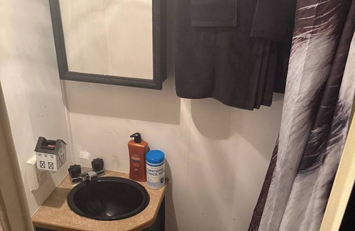 This clean and cozy trailer space offers privacy and all amenities included-Free parking TV fully equipped kitchen for all your cooking needs Heating/AC complimentary snacks water and a BBQ grill available for use