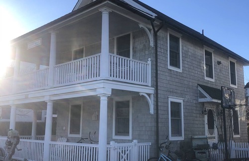 Lovingly renovated, I am a single-family, beach cottage in a family-friendly, Jersey Shore town. My decor is always clean and fresh. This is a ground floor unit with it's own porch, including rockers and a table and chairs. The top two floors are 2 bedroom 2 bath. The shabby chic decor includes an open living, dining, kitchen and a private bedroom and large bath. Parking, beach, perfect doll house with all extras included in the convenient heart of Sea Isle City. Sparkling clean and comfy.
