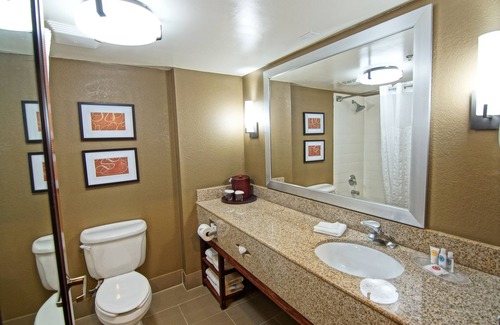 Comfort Suites Near University possède 71 chambres comprenant la climatisation, des lave-linge/sèche-linge et une cafetière ou une bouilloire. Les chambres incluent un canapé-lit de grande taille et un coin salon séparé. Les lits sont dotés de matelas avec surmatelas et sont préparés avec des draps en coton égyptien, une couette en duvet d'oie et de la literie de qualité supérieure. Une télévision à écran plat 49 pouces propose des chaînes thématiques par satellite. Un réfrigérateur et un micro-ondes sont fournis. Les salles de bains ont un ensemble douche/baignoire, une baignoire relaxante profonde, des articles de toilette de luxe, des articles de toilette gratuits et un sèche-cheveux.