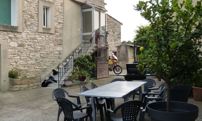 The family house, in this typical village, dates from the end of the 19th century and is made up of a very large courtyard with a motorcycle shelter and 7 m long summer equipment, a shower area and summer toilet, with an outdoor table for lunch, the barbecue and the possibility of parking two cars. Note that a municipal car park is 50 m away. The house is not suitable for people with reduced mobility (we are sorry) because it cannot be modified.