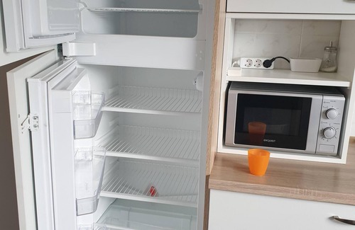 The bungalow is suitable for 6 persons. There is a living room with open kitchen and dining area with 6 chairs. The living room has a large flat-screen TV with satellite connection and only German TV programmes, a CD player, DVD player and various (German) board games.