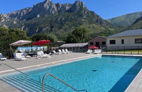 Salle de bainsPapier toilette, Serviettes / linge de lit (frais supplémentaires), Douche, Salle de bains privative, Sèche-cheveux, Baignoire ou douche, ToilettesHigh-techTélévision à écran plat, TélévisionCuisineFour, Ustensiles de cuisine, Grille-pain, Micro-ondes, Cuisine, Plaque de cuisson, Réfrigérateur, Table à manger, Machine à café, Lave-vaisselleCoin salonCoin repas, Canapé, Coin salonChambreTrès grands lits (> 2 mètres de long), Armoire ou penderieGénéralChauffage, Poubelles, Détecteur de fuméeVueVue sur le jardin, Vue, Vue sur la montagneEn extérieurMobilier d’extérieur, Terrasse, Piscine privée, Espace repas extérieur, BarbecueAccessibilitéLogement entièrement situé au rez-de-chaussée, Lavabo bas adapté aux personnes à mobilité réduite, Douche accessible en fauteuil roulantÉquipements en chambrePortant, Étendoir, Prise près du lit, Canapé-lit, Oreiller sans plumesEspaces piscine et bien-êtrePiscine chauffée |