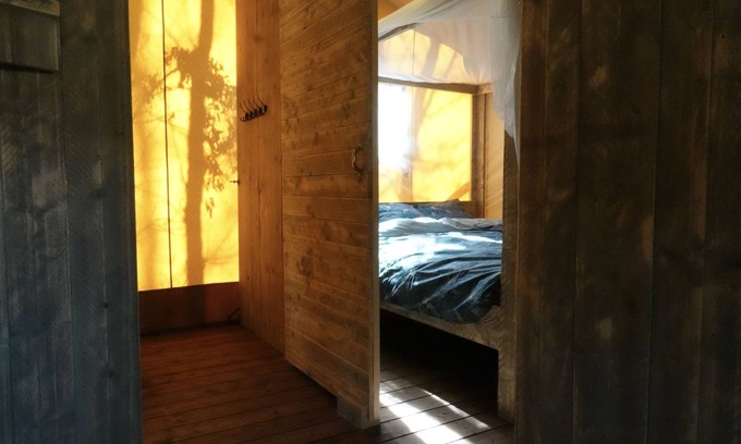 Installés sur une plateforme en bois surélevée, tous les chalets sont situés du même côté du domaine, garantissant non seulement un cadre verdoyant, mais aussi votre propre espace privé grâce à une terrasse aménagée avec soin.
