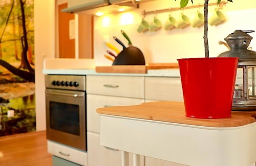 Un cadre élégant sur 45m². L'appartement est pour 2 personnes. conçu et peut max 4 Pers. mettre supplémentaire. Il est situé dans. 2 Étage, et comprend une salle de bains avec baignoire, une cuisine entièrement équipée, salon et chambre à coucher.