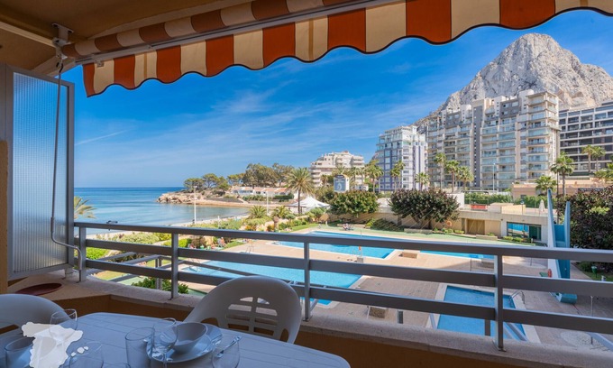 Un appartement de vacances parfait en première ligne à Calpe, Costa Blanca pour 4 personnes, avec deux chambres et une salle de bain.