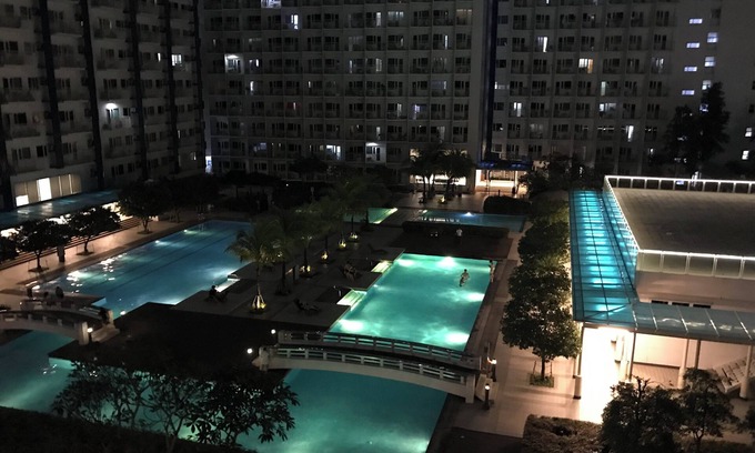 Cat Loves Staycation offers free Wi-Fi (100 Mbps) and Netflix. The unit has a well-equipped kitchenette and a dining area suitable for four, with an ample living area, a flat-screen TV, and a balcony overlooking the pool area.