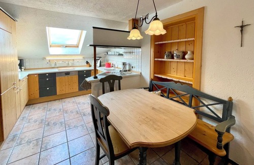 The holiday flat ‘Gemütliche Eigentumswohnung’ is located in Palling with a view of the Alps. The 98 m² attic flat on the 2nd floor consists of a living room, a well-equipped kitchen, 2 bedrooms and 1 bathroom as well as a guest WC and thus offers space for 4 people. Facilities also include high-speed Wi-Fi (suitable for video calls) with its own workstation for home office, a TV, a fan, children's books and toys. A high chair is also available.