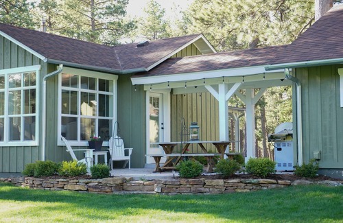 Laissez notre cottage de ferme être votre maison loin de chez vous pendant que vous profitez de tout ce que le Colorado a à offrir. Notre chalet entièrement restauré est niché parmi 11 acres de pins imposants. Nous aimons que notre maison soit située à quelques minutes du monument historique du centre-ville et que l'Air Force Academy se sente encore loin de tout.